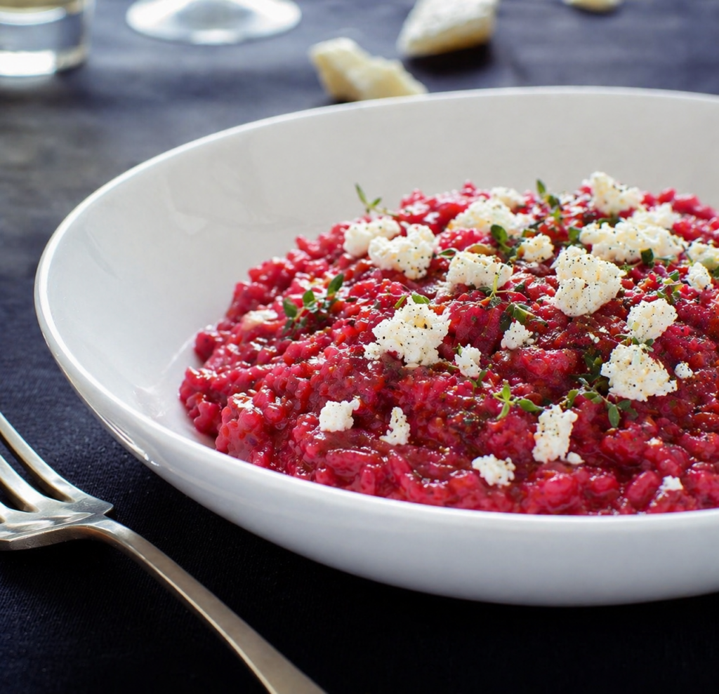 Ha valami meleg, krémes és mégis könnyen emészthető ételre vágysz, ez a céklás rizottó kiváló választás lehet. A sült cékla enyhén édeskés íze és színe adja meg ennek a rizottónak az alap karakterét.